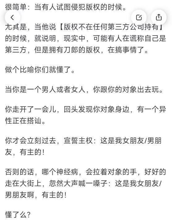 所以刀郎的声明里之所以强调版权只在刀郎自己手里,大概率是他发现有人试图侵犯他的版权了。